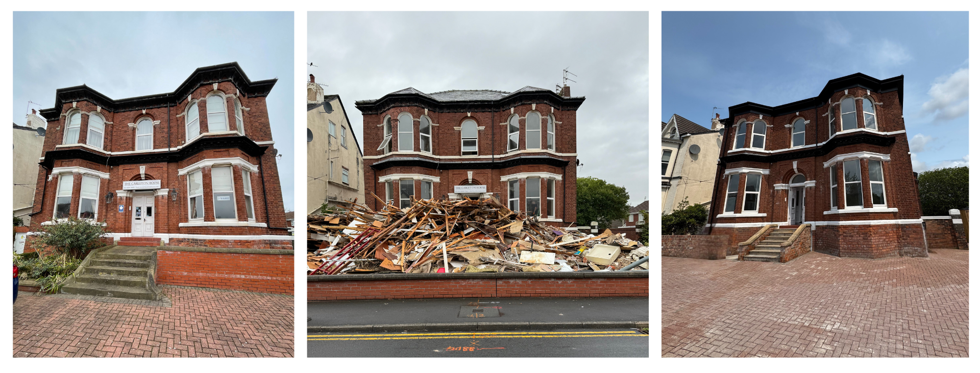 Externally, we’ve not had to make significant changes (see photos above) but internally it’s unrecognisable after we’ve made wide-ranging structural alterations.